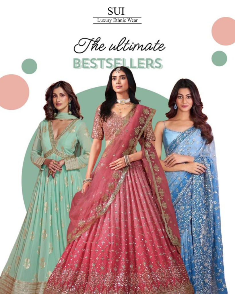 Sui designs and stitches luxury ethnic wear with a perfect blend of tradition and modern elegance. We create bespoke outfits using premium fabrics, detailed craftsmanship, and precise tailoring. Our focus is on personalized styles that reflect individuality and cultural richness. From concept to completion, we bring your luxury fashion vision to life.